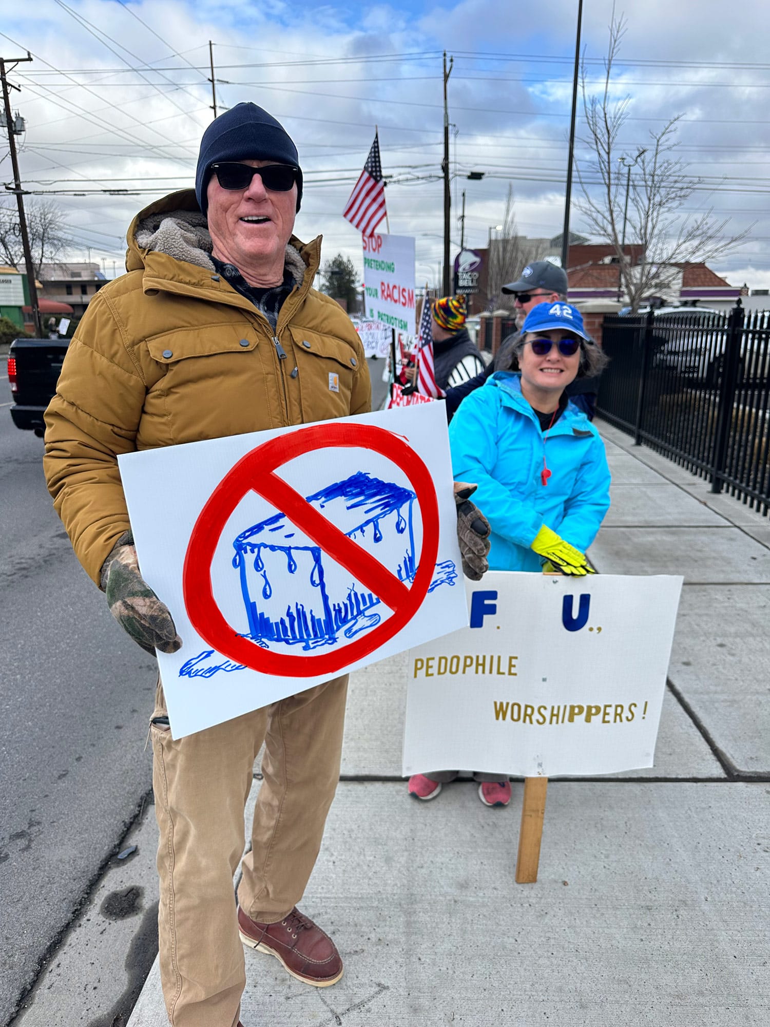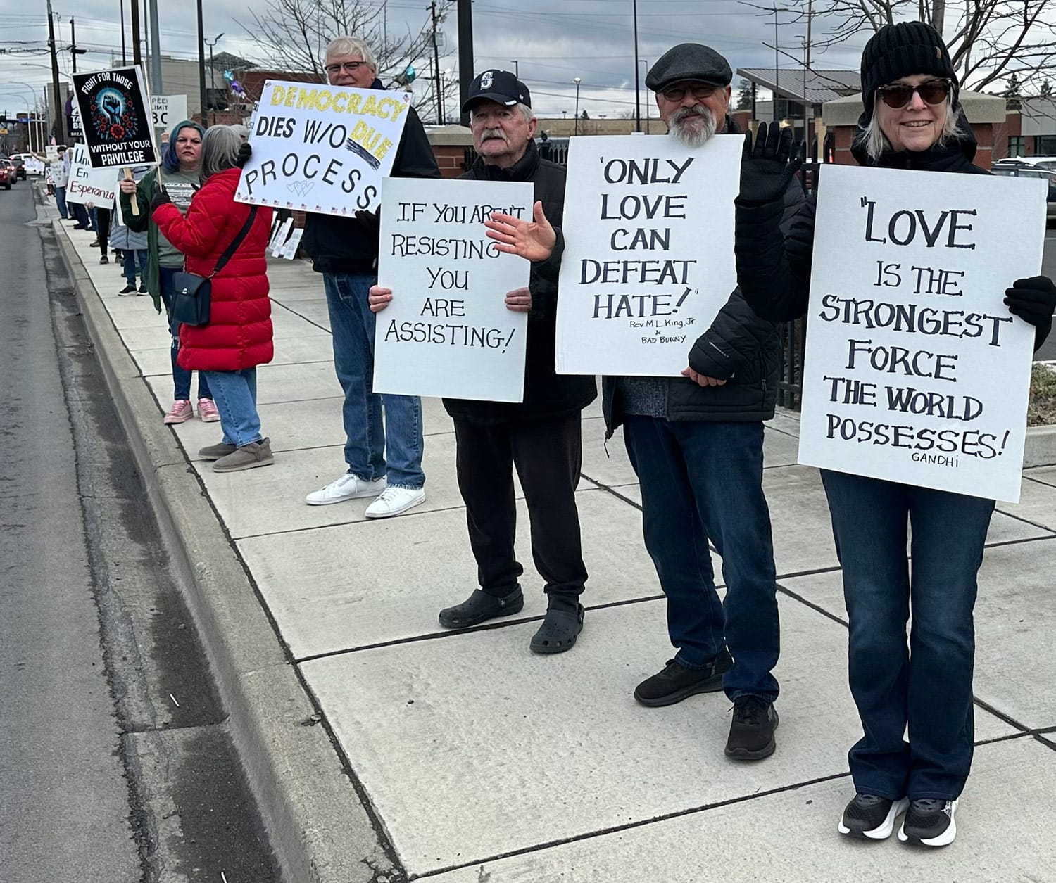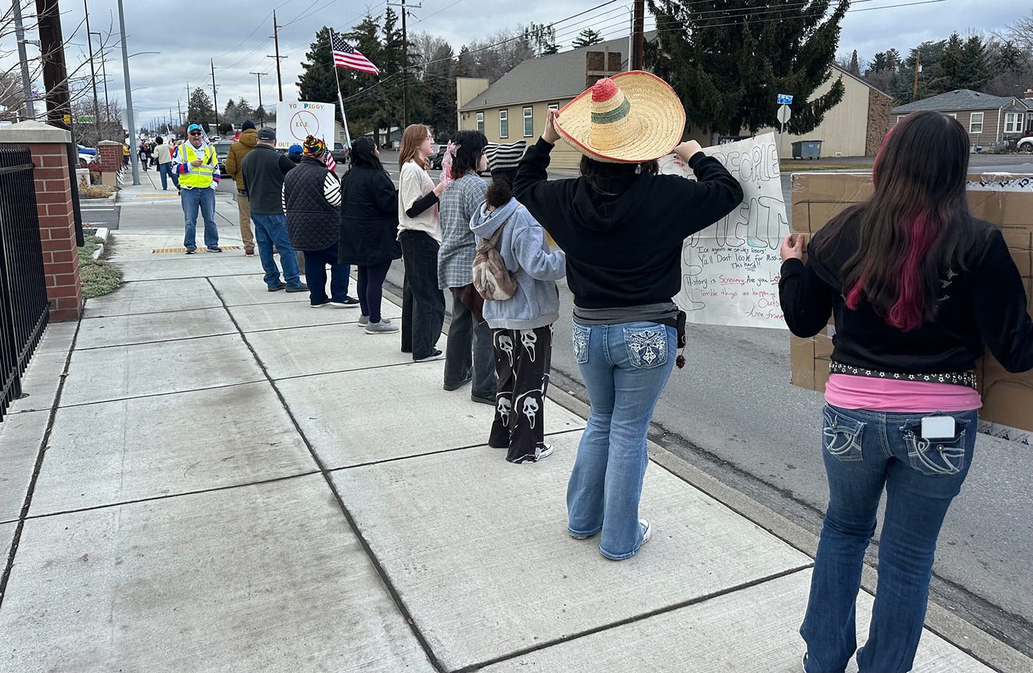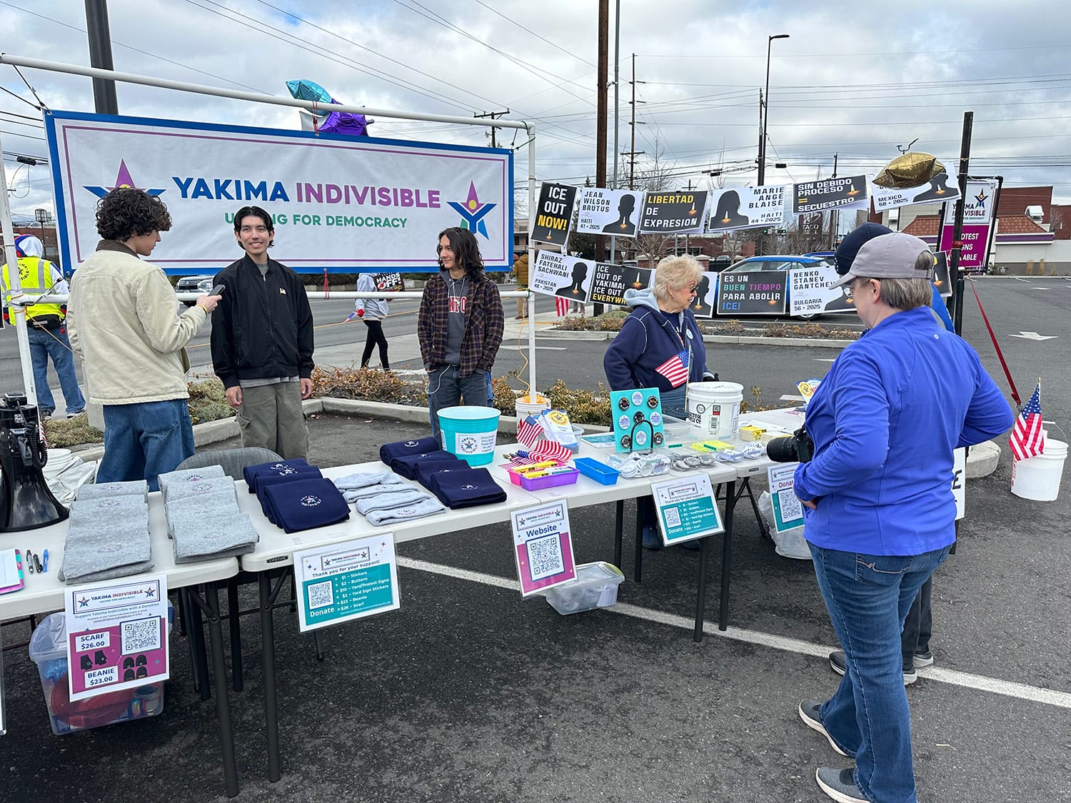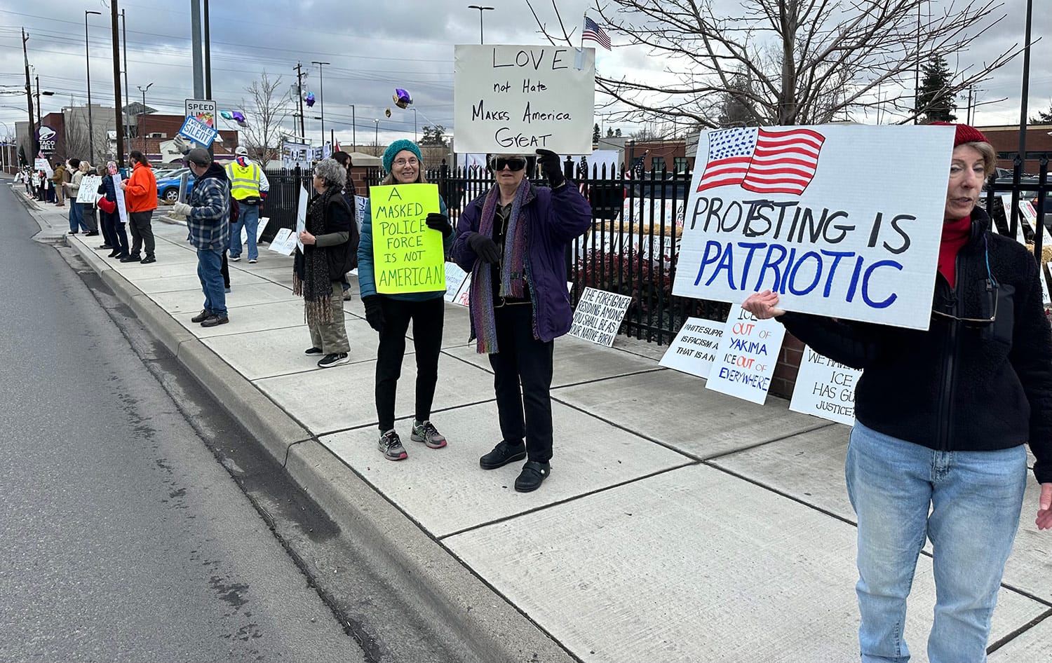 Nearly 200 protesters gathered along Nob Hill Boulevard in Yakima, despite gray skies and chilly temperatures. In the Tri-Cities, more than 100 citizens protested. In Tonasket, 44 people gathered in solidarity with the CD-4 group – an impressive 6% of Tonasket’s population of 800.