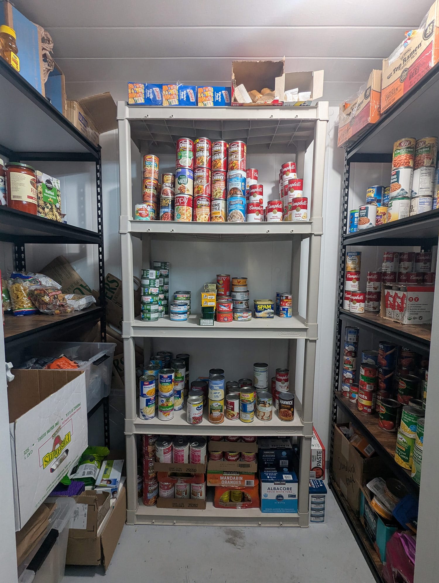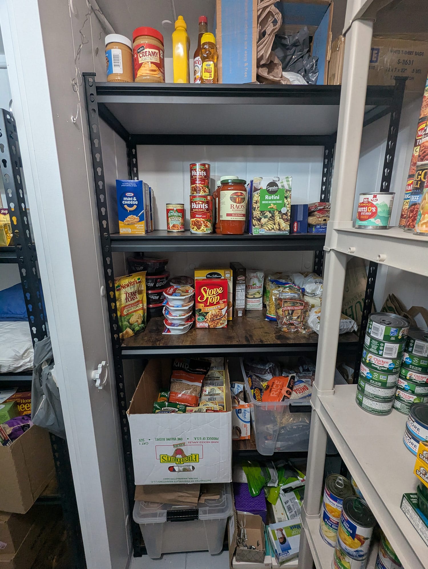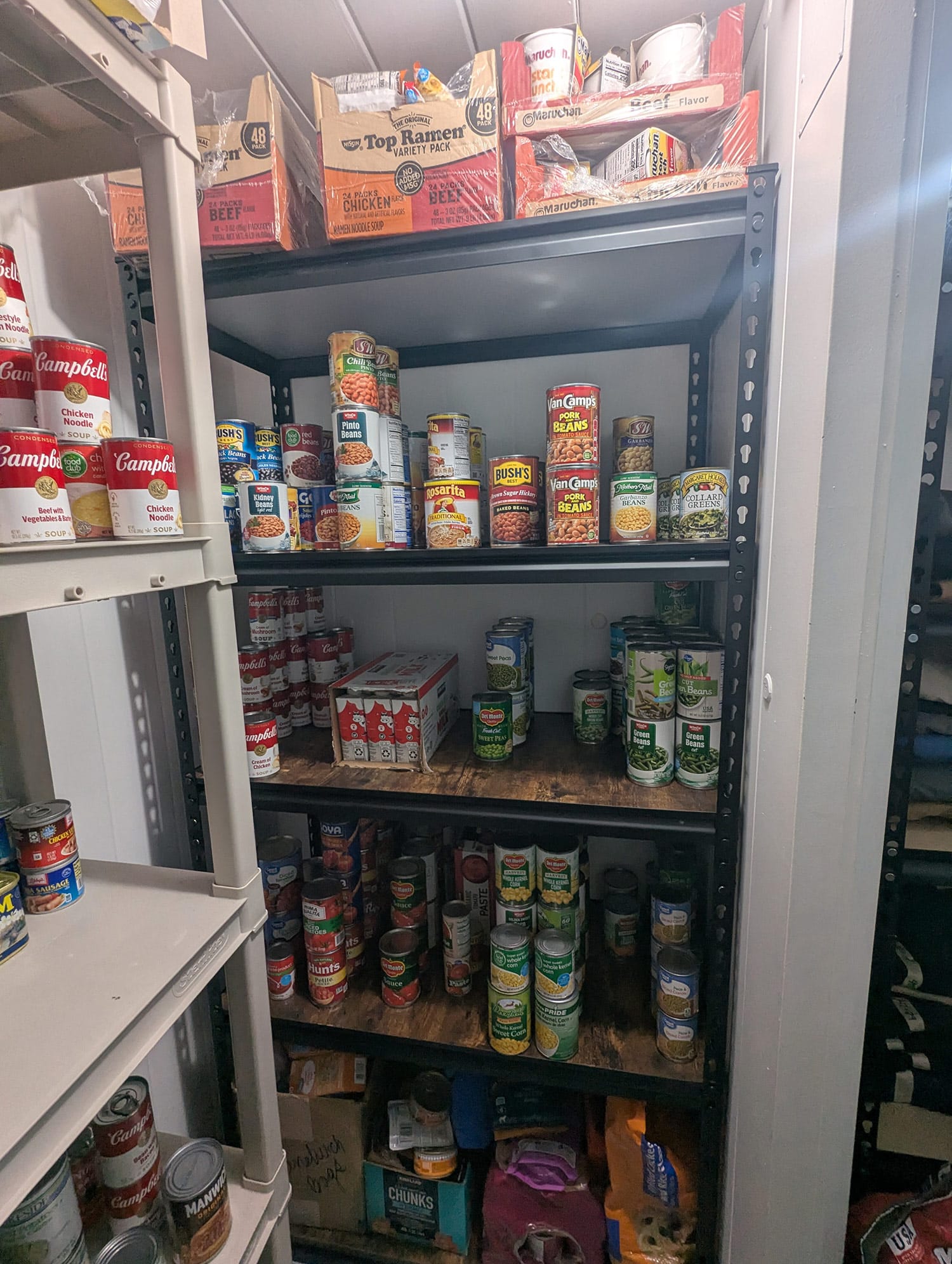 As you saw, we’re usually well stocked on items like green beans, corn, and other vegetables. What we tend to run out of most often are soups and chilis, since those are always popular. Because we receive so many canned beans, chili without beans is a great option. It lets us pair a can of meat with beans to make a full, hearty meal.